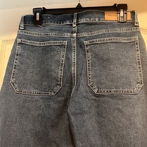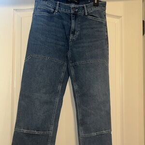 Leg panel style, 90s/Y2K vibes. NWOT, stretch material, medium dark wash. Straight leg.