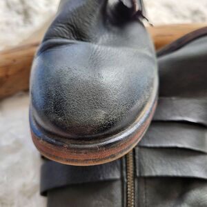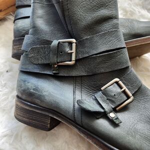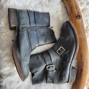 strappy plus side zip ankle booties. distressed steam punk style. Preloved condition. All sections of interest as well any known flaws have been documented in the photos and noted as thoroughly as possible. if there are no known flaws, none will be noted. Please feel free to ask any questions before purchase 🙂.