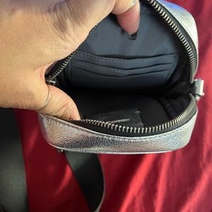 It’s not scratched that might’ve just been like an indentation there’s really nothing wrong with the bag it’s super cute it just doesn’t fit my cell phone and all the things I need in a small bag.