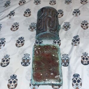 Treasure chest Signed Pottery glazed teal color. Beautiful design.