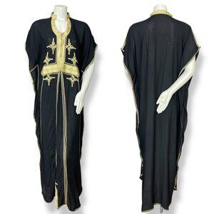 Treasures of Morocco Kaftan Dress Gold Trim Black Maxi Women Embellished Caftan