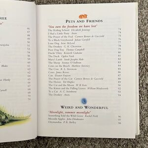 This book is called treasury of poetry for children. The foreword is by Charles Causley. This book has 384 pages and was copyrighted 1997. The treasury of poetry for children is a timeless selection of poems both funny and serious, in which old favorites mix with little known jewels, and established classic sly along side more contemporary verse. These poems are illustrated with full color pictures enhancing them for readers of all age. There are over 250 poems making this a book which will last a lifetime.