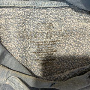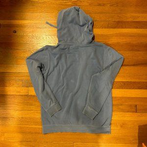 Oversize (22 wide [pit to pit] and 28 long, from shoulder to bottom of waistband), actual size unclear but you can look at the photo of the label