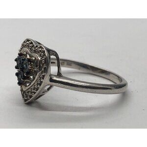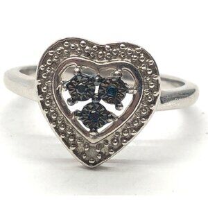 Treated Blue Diamond Sterling Silver Ring 925 Size 7.5 Heart Signed TGGC