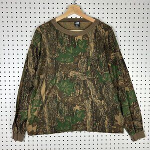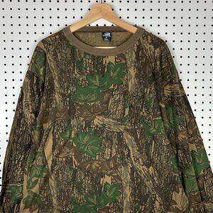Trebark Vintage Camo Ringer T Shirt XL Long Sleeve Hunting Vintage Print 90s USA