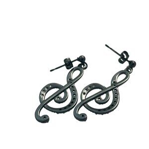 Treble Clef Earrings Music Note Black Metal Rhinestones Artistic Teacher Gift
