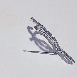 2” long x 1” wide. Beautiful condition. All stones intact. Silver tone back. Smoke and pet free home.