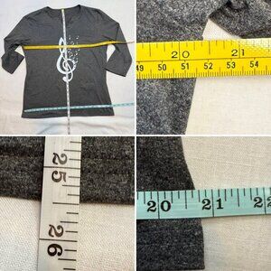 Treble Clef Music Note Top Size L Charcoal Gray Musiccore Graphic Tee 3/4 Sleeve