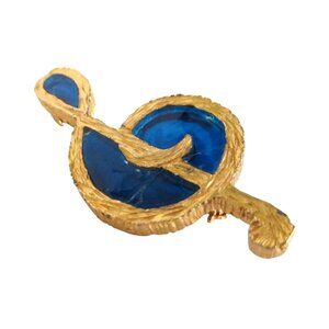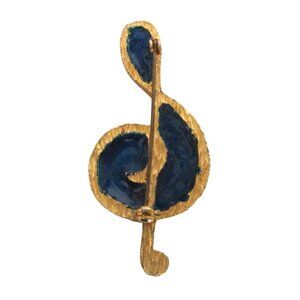 This charming vintage brooch features a treble clef design, beautifully crafted in gold and blue tones. A stylish accessory for music lovers or collectors, it adds a touch of elegance to any outfit. The intricate detailing and vibrant colors make it a standout piece.