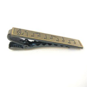 Treble Clef Notes Staff Tie Clip Bar Goldtone Music Band 1.8 nches