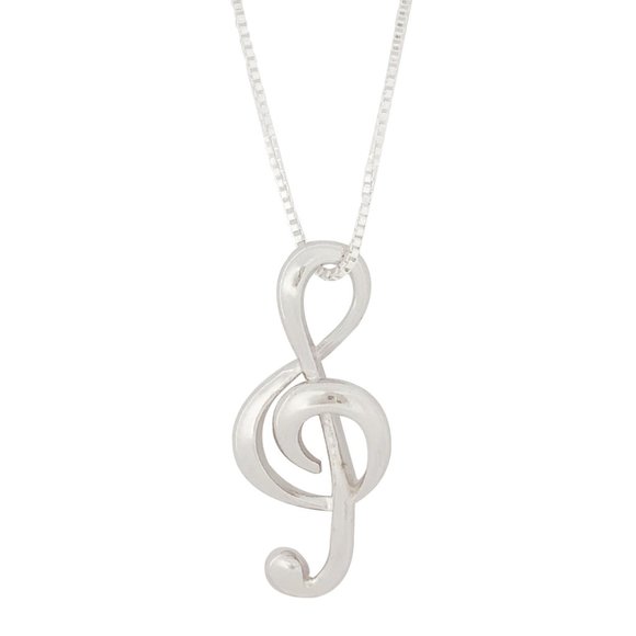 This Musical Note Pendant Necklace features a simple treble clef musical sign in silver-tone alloy.