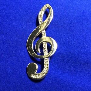 Treble Clef Silver Rhinestone Brooch Pin.