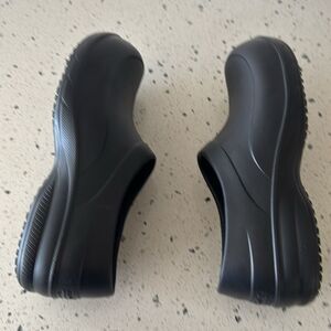 Comfortable black slip-on clogs. Perfect for work or casual wear.