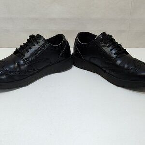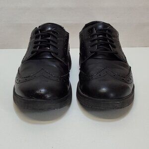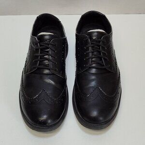 These Tredsafe Roman dress shoes embody elegance and functionality, featuring a classic wingtip design and a reliable slip-resistant Mark II sole. Crafted for men's size 10, these shoes are restaurant-approved, ensuring safety and style in professional settings. Their sleek black finish pairs seamlessly with formal or semi-formal attire, blending practicality and sophistication.