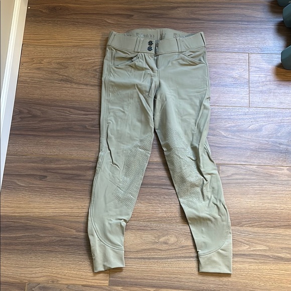 Stylish tan riding breeches with knee patches. Perfect for equestrian activities. Great condition