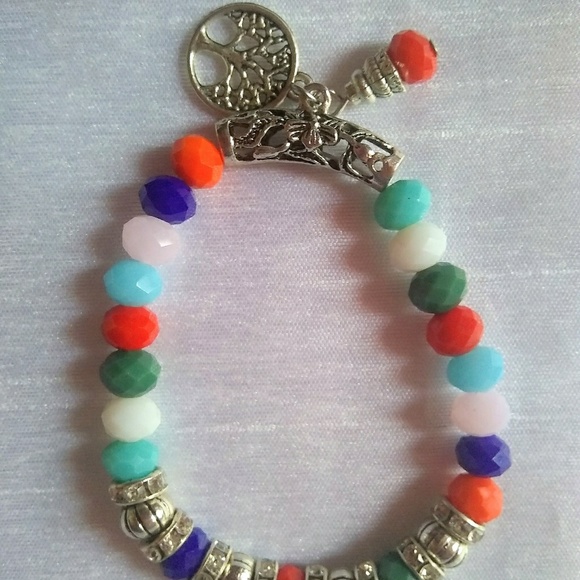 Cute colorful bracelet with tree pendant, can stretch to fit any wrist.