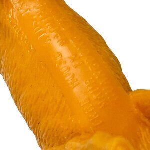 This detailed yellow plastic dog figurine is an ideal collector's item or educational toy, offering realistic features and durable construction.