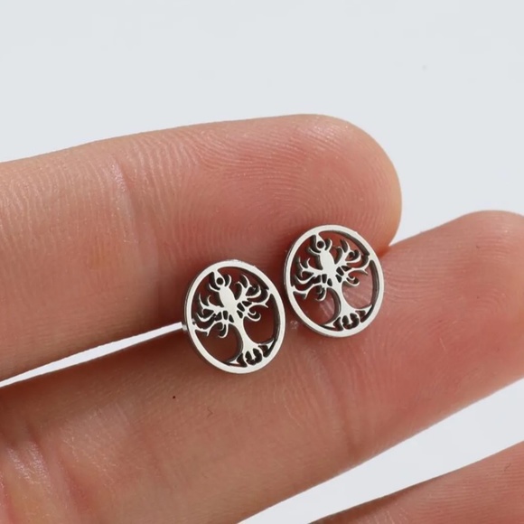 Brand new, never worn. Tree of life earring studs. Made out of Titanium Steel. Will not rust or tarnish. Hypoallergenic.