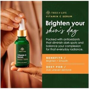 Brand new in sealed box Tree of Life Vitamin C Serum. 1 fl. oz. size. for all skin types and nt ones. Brighten and Smooth. Apply 3-5 drops to face, neck and decollete. Made in the USA. Stored in a smoke-free environment.