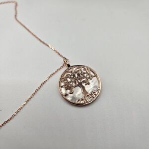 Tree Of Life Rose Gold Necklace Mother Of Pearl Pendant 18" Chain Sterling 925 G