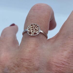 Tree Of Life Solid Sterling Silver Two-Tone Ring Rose Gold sizes 6,7