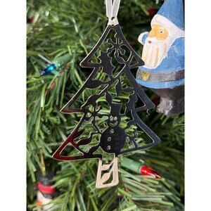 Tree Ornament Silver Tone Metal Cutout Christmas Tree Ornament