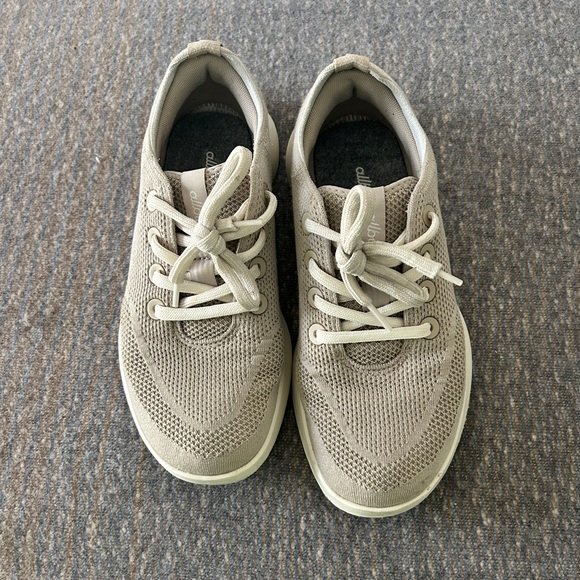 Beige knit sneakers with lace-up design. Perfect for everyday comfort.