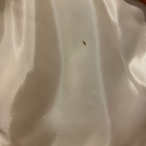 GORGEOUS!! Pink and white satin vintage tree skirt. Was my grandmother’s. I inherited it years back. My intention was to find a tree to match it so I could display it. Three kids later and now grandkids I still haven’t displayed it. It’s truly beautiful and has always been stored properly. It’s soft and on the thicker side. It’s NOT flimsy at all. Pink ribbon ties. One tie is shorter but hardly noticeable. Off white lace surrounds the edges. There are a few random dark spots(pictured). I don’t know what they are but they hardly show. It’s clean! Clean home always! 40 inches across. Really nice! Hoping to find a new home🎄