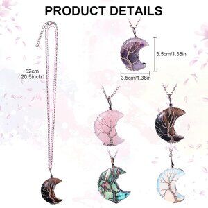 Tree of Life Crescent Moon Necklace Natural Gemstones Healing Crystal Jewelry