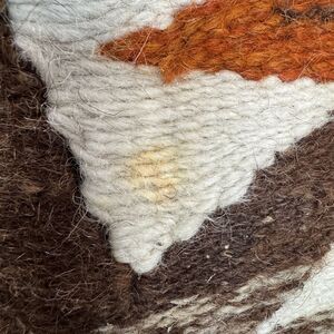 This beautiful rug or wall hanging measures 60" long x 34" wide.