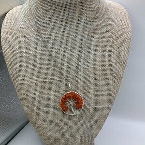 Tree of Life Natural Orange Carnelian Chips Sterling Silver Chain Necklace