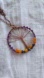 The wire wrapped copper tree is beaded with amethyst, orange jade and peacock pearls.