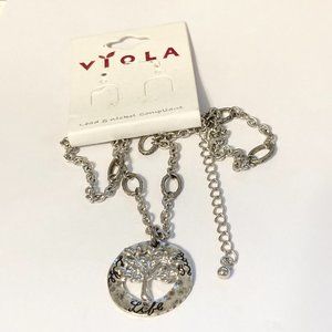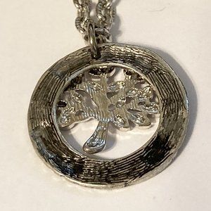 Tree of Life Pendant Necklace 18-21" Chain Message LIFE Silver Tone Serenity