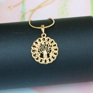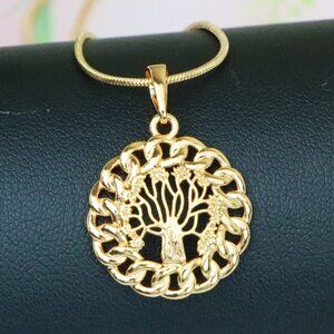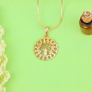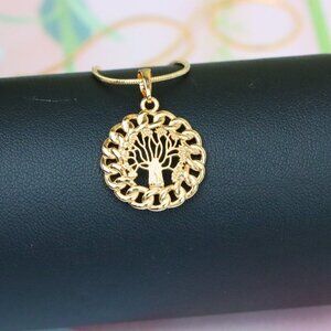 "Tree of Life Round Rose Gold Pendant with Chain Pattern Frame, XPPT1294