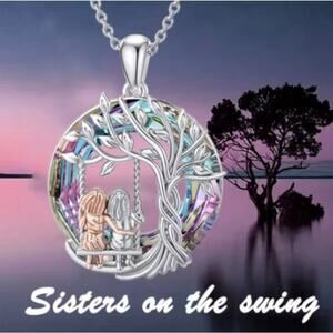 Tree of Life Sisters on the Swing Pendant Necklace – 18" Stainless Steel