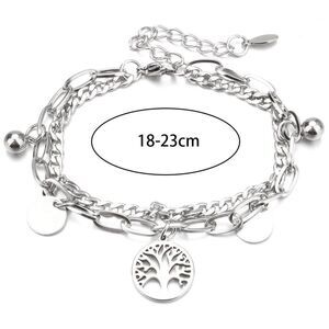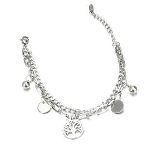 Tree of Life layered Stainless Steel Multi Charm Chain Bracelet