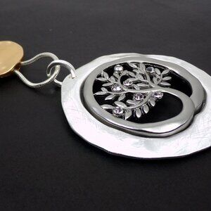 Tree of life large round pendant necklace with carved tree leaves center 2.65"