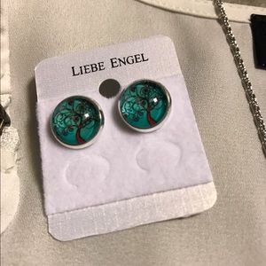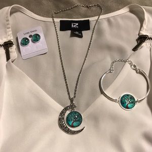 Adorable necklace earring and bracelet set! Bracelet measures about 8” and necklace 18”. Beautiful teal color!
