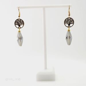 Tree of Life Drop Dangle Handmade Glass Beaded Earrings Jewelry Gold Toned