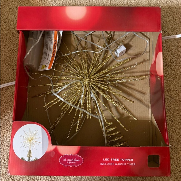 Opened but never used, st nicholas square gold led christmas tree topper, just didn’t like with my tree