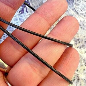 Sweet Tree of Life floating charm necklace in gold tone with a 17” black fiber cord and 2.5” extender.