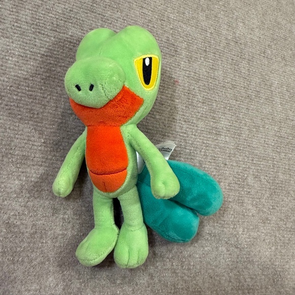 The Treecko Plush Pokemon Center, released in 2014, is an 8" stuffed animal featuring the green Treecko character from the Pokemon franchise. This small-sized plush is perfect for fans of the Pokemon series, making it a great addition to any collection or as a cute gift for any occasion. With its authentic branding and character family ties to Pokemon, this Treecko plush is sure to bring joy to collectors and fans alike.