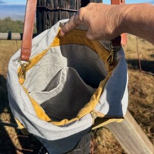 Treehouse designs Maui mustard yellow handcrafted canvas leather crossbody bag