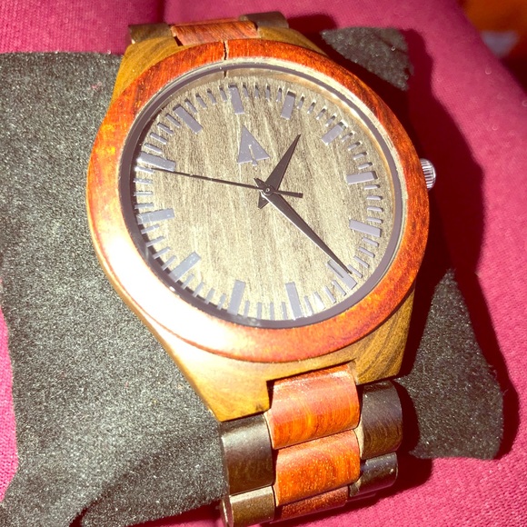 NEW TREEHUT MENS WATCH! Classic cherry and oak wooden band with stainless steel accents. Very lightweight and far more unique then most watch’s.