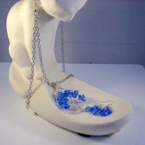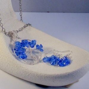 ❤️ BLUE SKY'S - "Tree-of-Life" Pendant Necklace Handmade Silver Craft Wire and Sapphire Blue Quarts Beads!