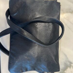 Stylish Treesje crossbody bag. Sleek black design. Gold studded accents. Perfect for any occasion.
