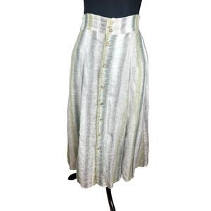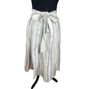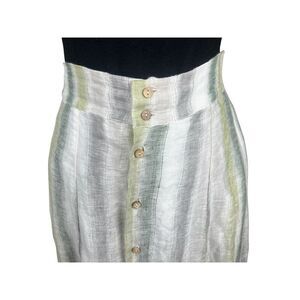Tregene S 100% Linen Madi Skirt Stripe Midi Lagenlook Button Front Coastal Gauzy