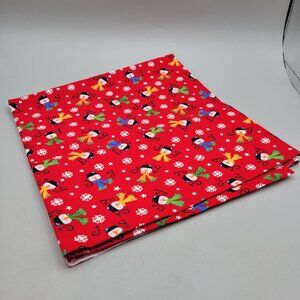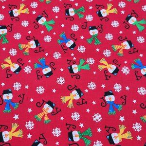 Trenas Little Bit Of Christmas Red Cotton Fabric Snowmen Joy and Scarves 30 X 44