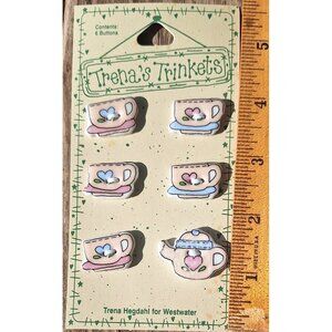 Trena's trinkets 6 ceramic buttons New Teacups floral sewing crafts