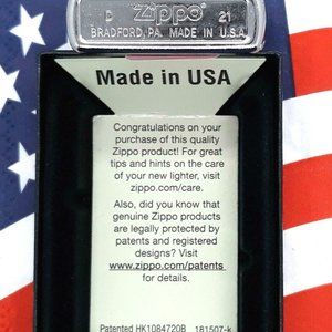 comes unfilled. Use Zippo premium fluid Genuine Zippo windproof with distinctive Zippo "click".